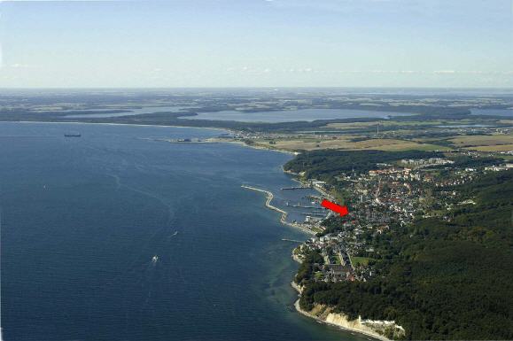 mit Blick auf die Mole, den Jacht-und Fischereihafen, den vorbeiziehenden